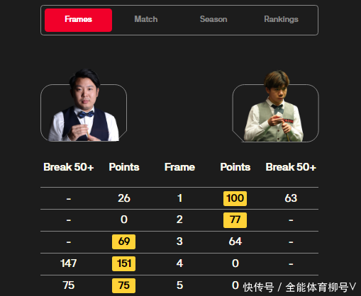 第五局,节略的局间休息回归之后,两东说念主打得依旧异常胶著,沃拉斯顿以58-43扳回一局,比分来到2-3。过程热烈争夺,雷佩凡以6-2打败沃拉斯顿,强势晋级英锦赛正赛。